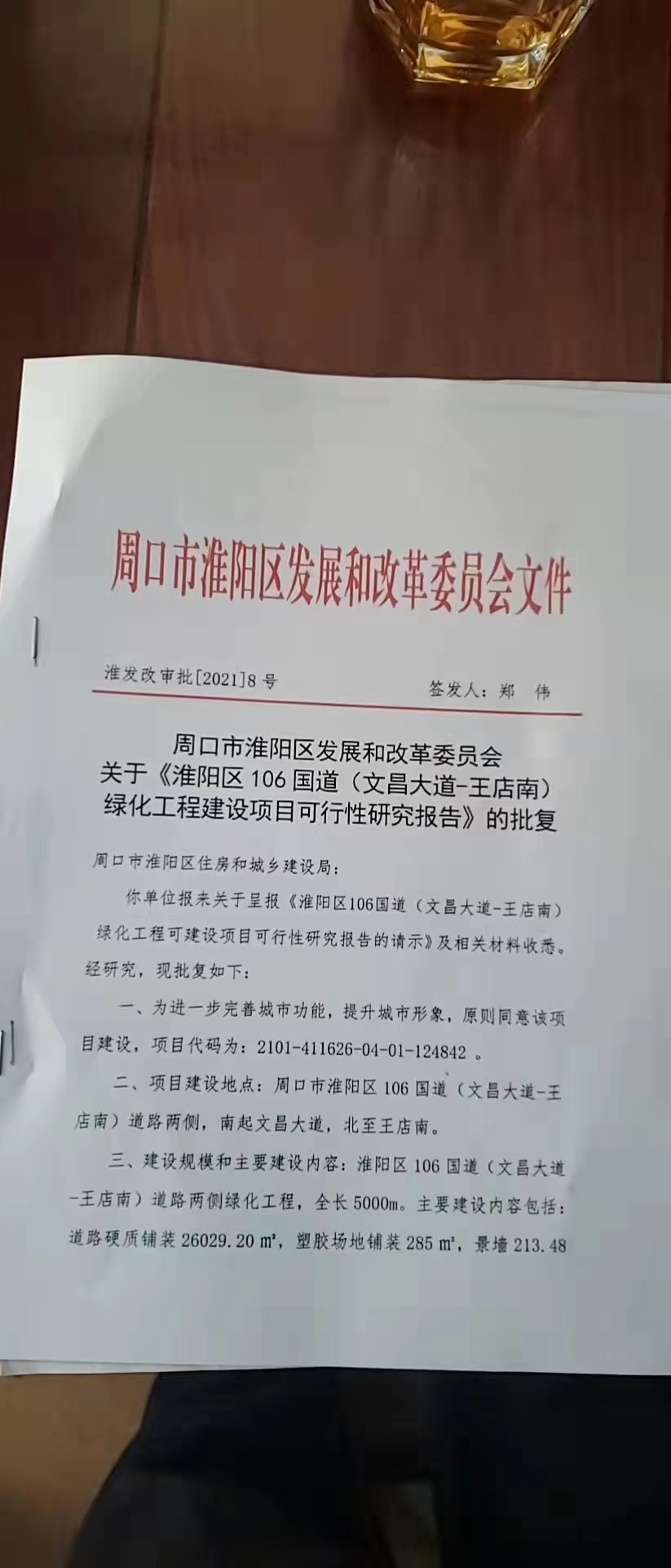 三、项目批准文件名称:淮发改审批【2021】8号