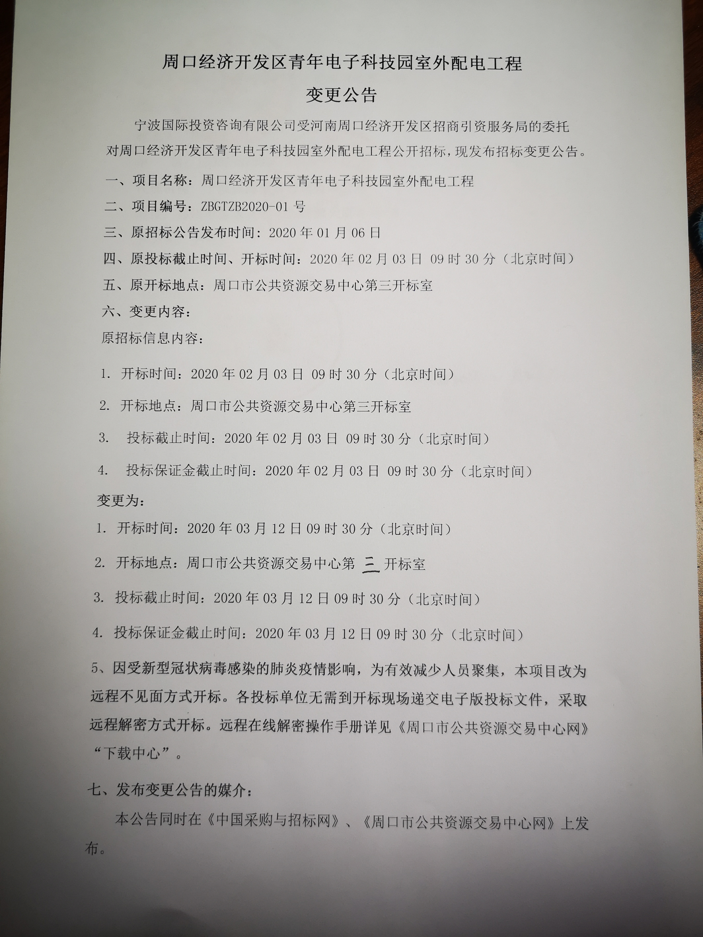 五、原开标地点:周口市公共资源交易中心第三开标室