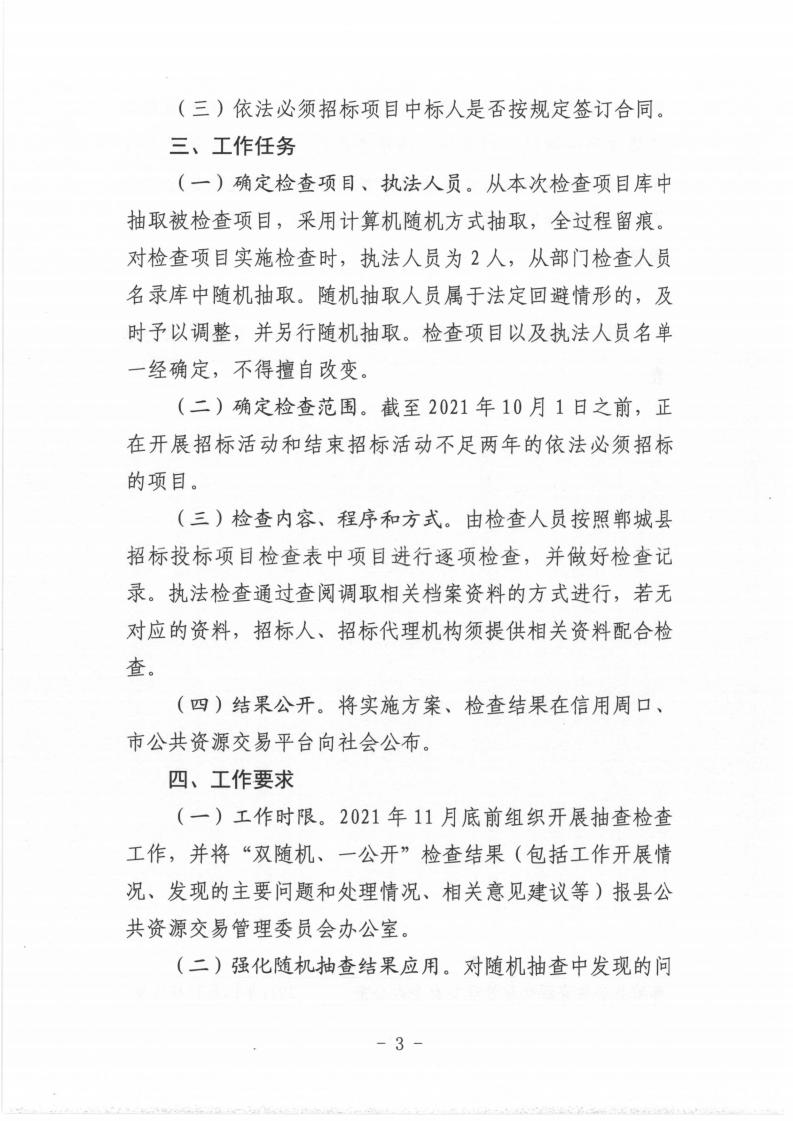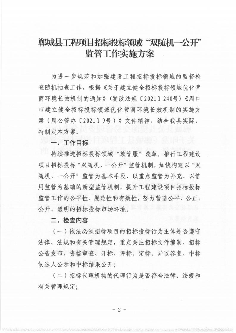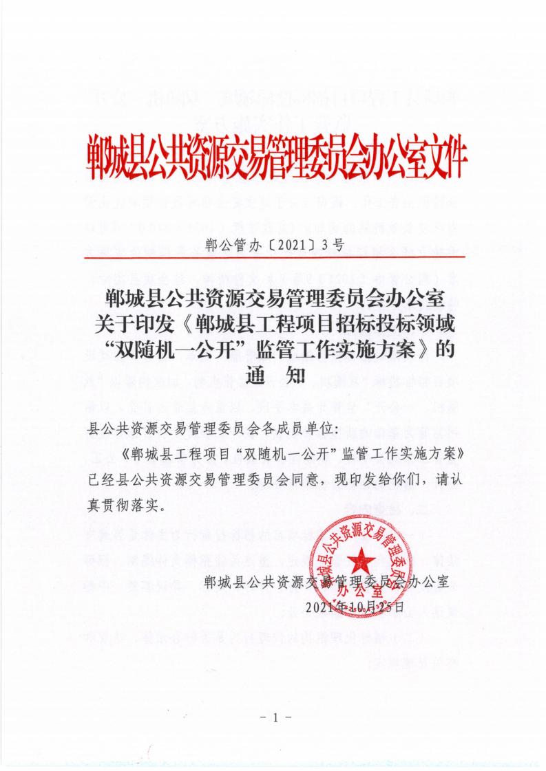 1、郸城县公共资源交易管理委员会办公室关于印发《郸城县工程项目招标投标领域双随机一公开监管工作实施方案》的通知(郸公管办〔2021〕3号).pdf