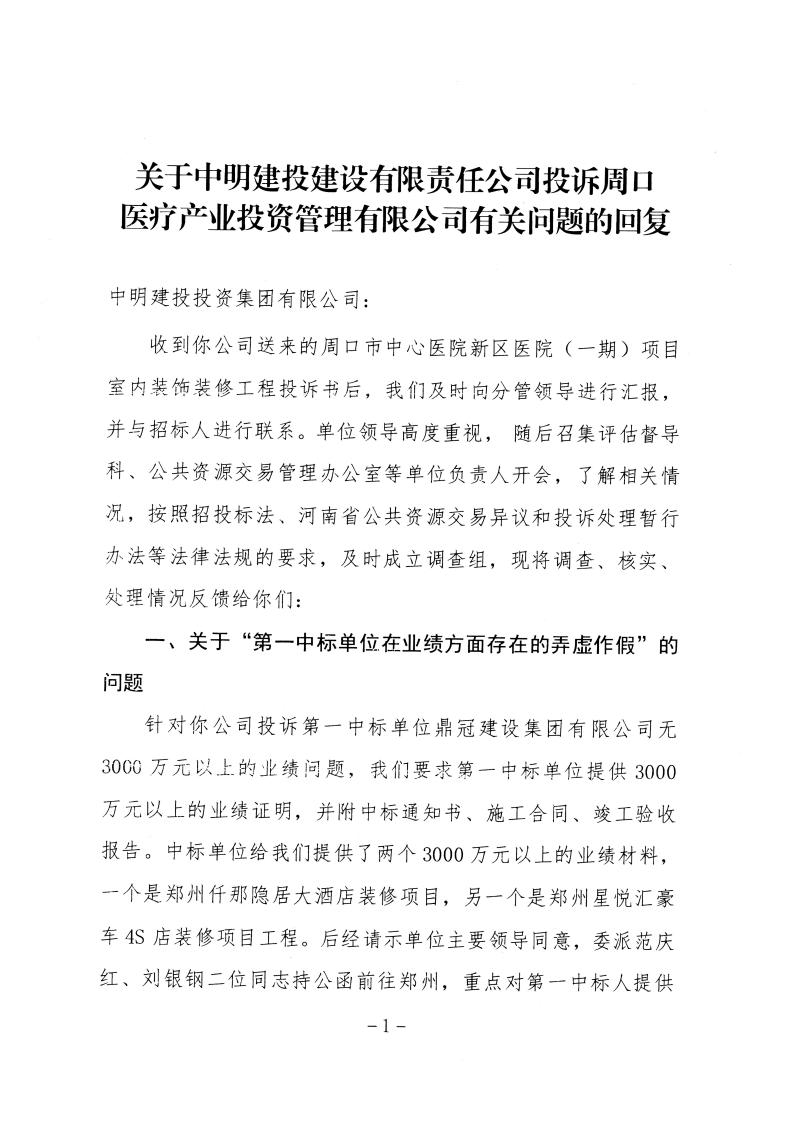 1、关于对周口市中心医院项目投诉的回复.pdf