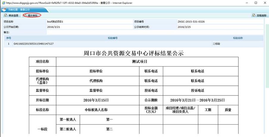2、填写公示详细信息并下一步确认(必须下载中心最新的评标结果公示模板);