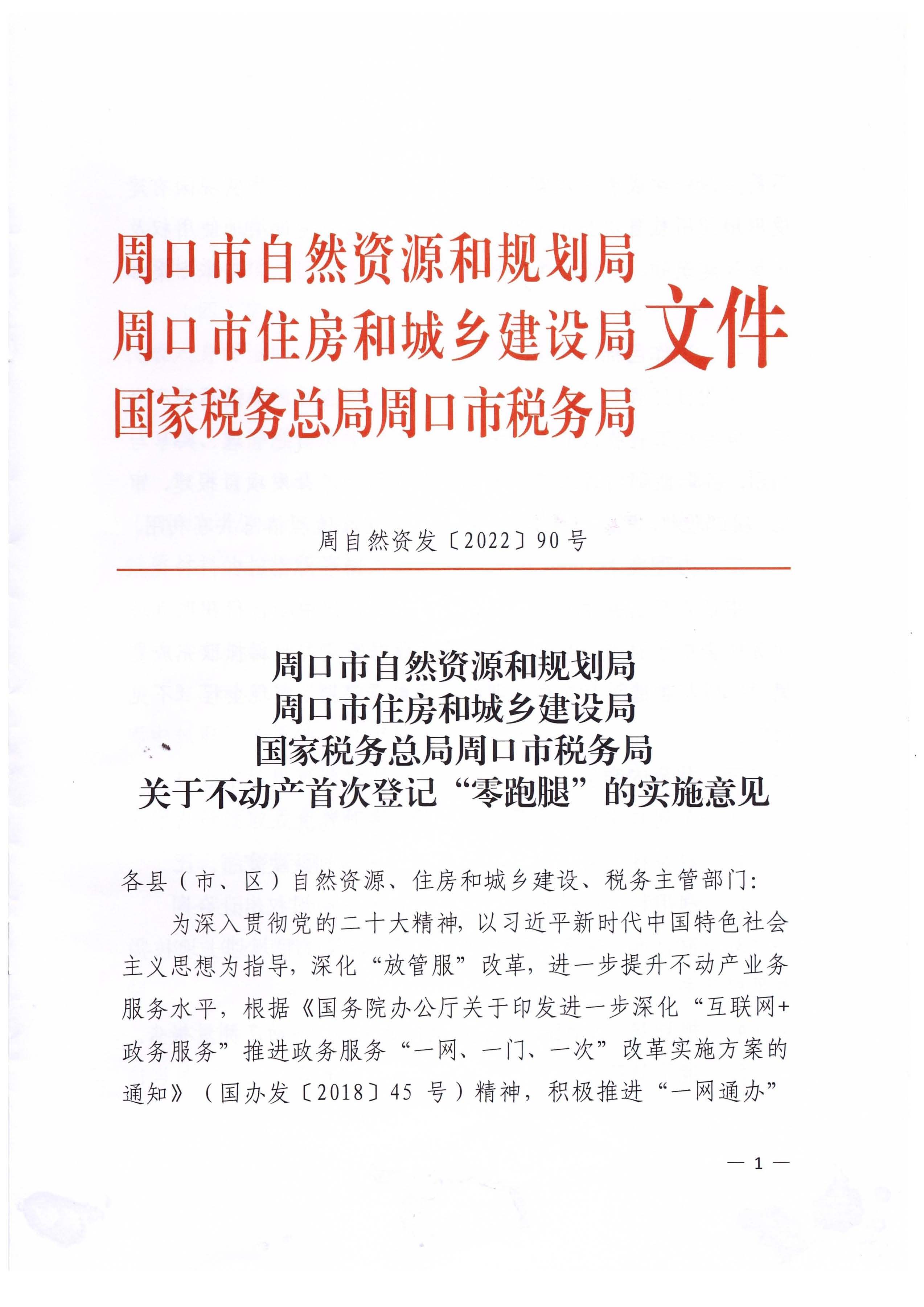 周口市自然资源和规划局周口市住房和城乡建设局国家税务总局周口市税务局关于不动产首次登记“零跑腿”的实施意见.pdf