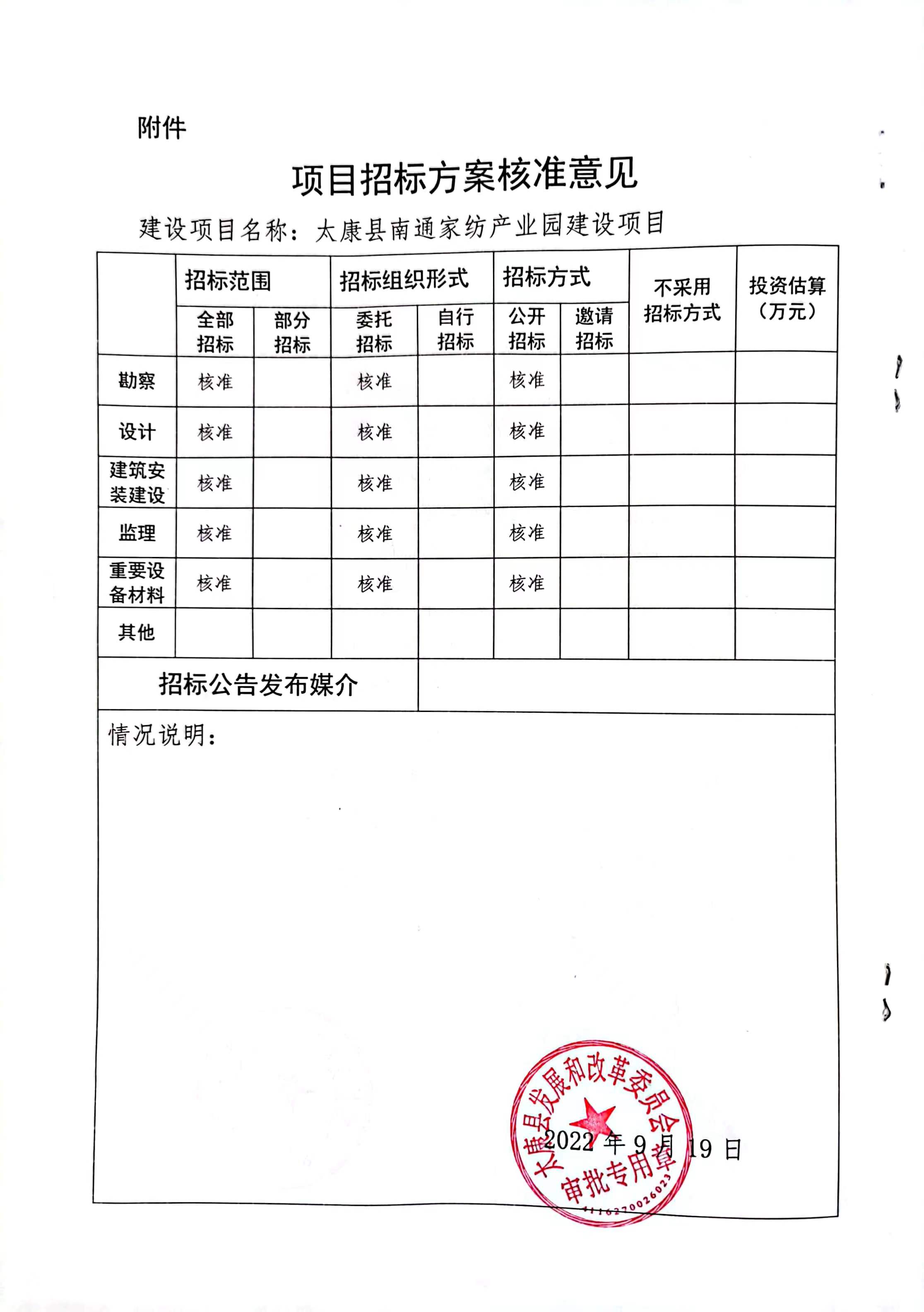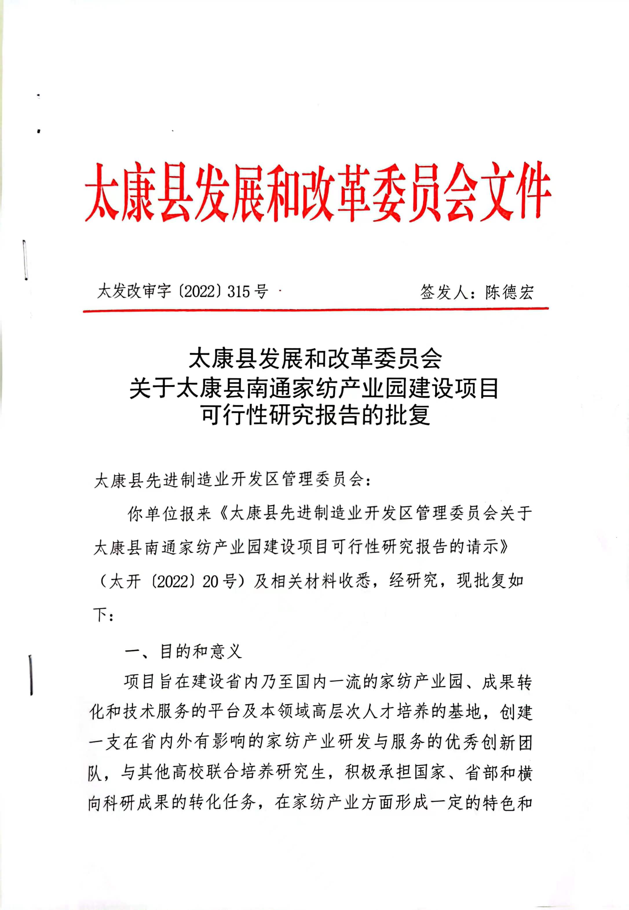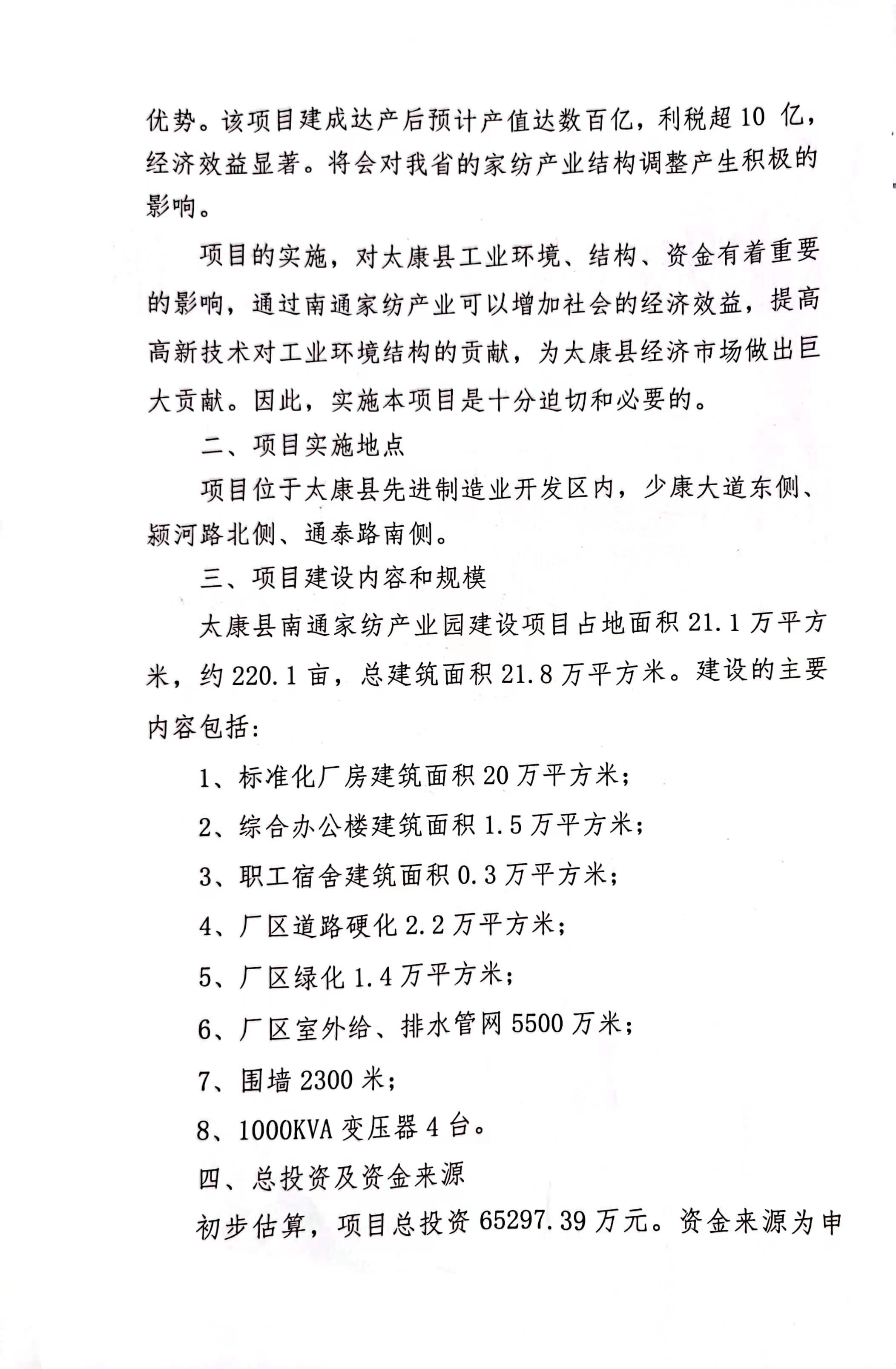 一、项目名称:太康县南通家纺产业园建设项目 |