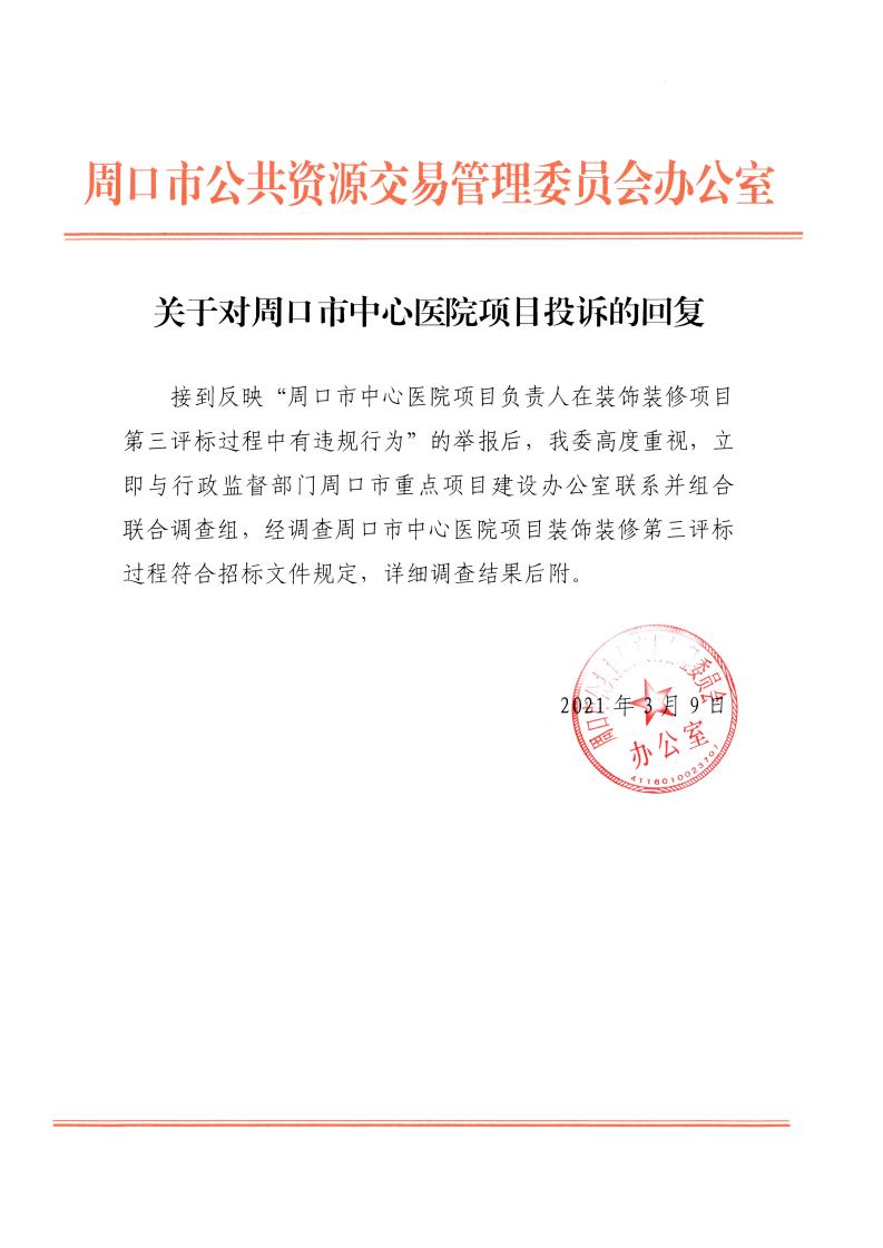 1、关于对周口市中心医院项目投诉的回复.pdf