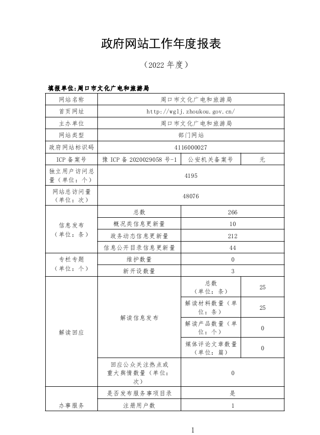 周口市文化广电和旅游局2022年政府网站工作年度报表