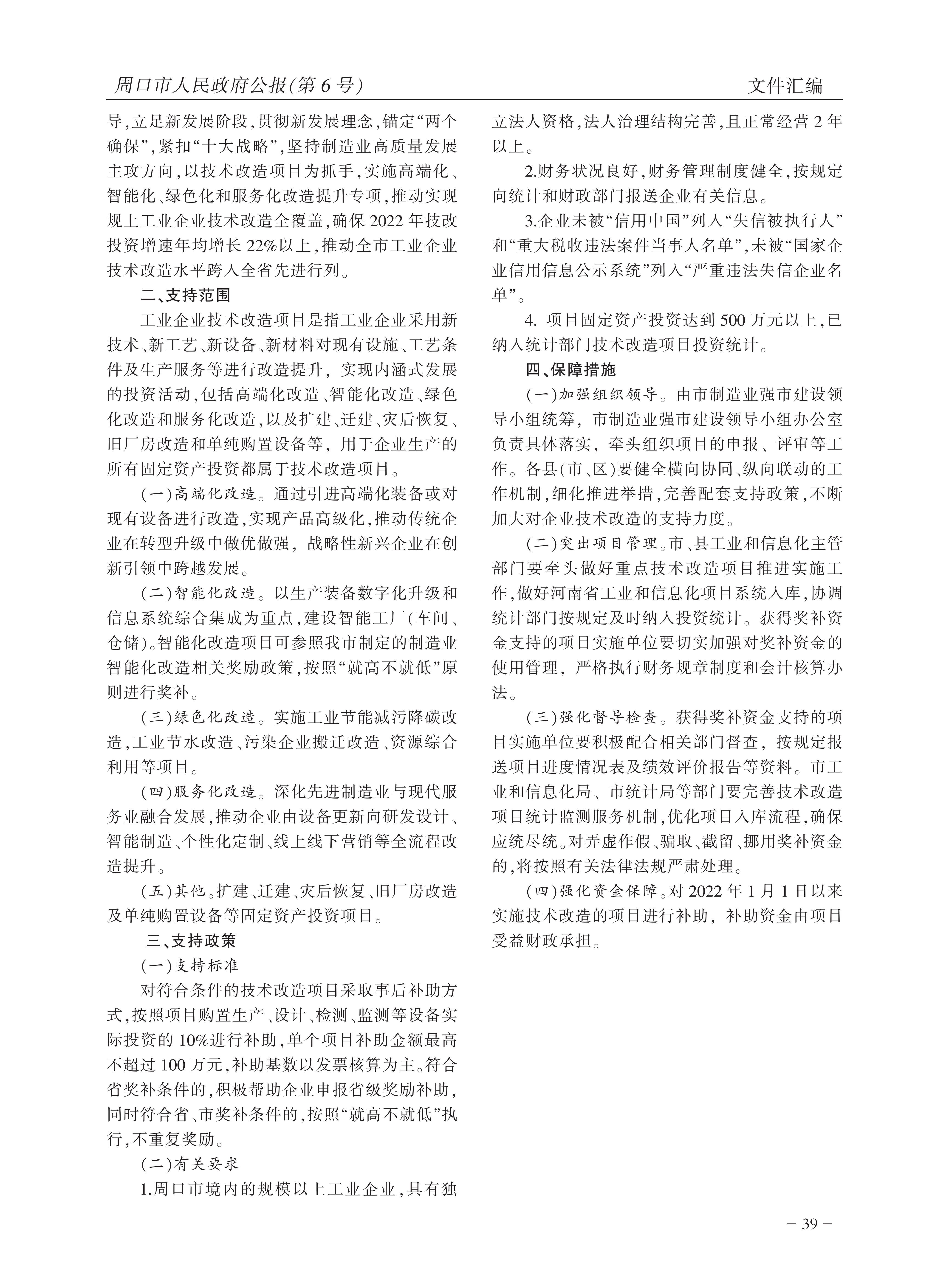 周口市人民政府办公室关于印发周口市规上工业企业技术改造项目补助办法的通知
