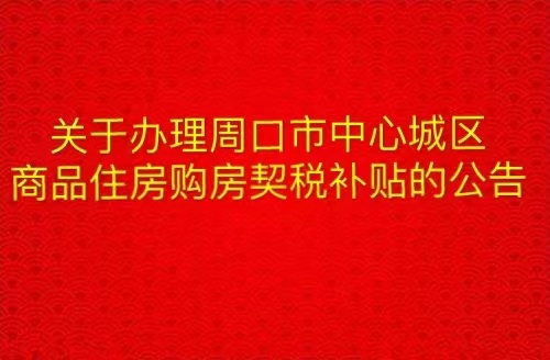 关于办理周口市中心城区商品住房购房契税补贴的公告